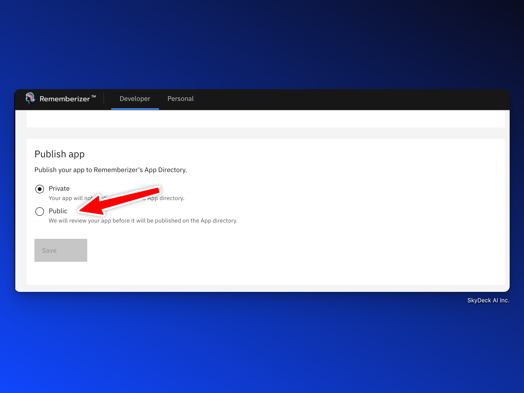 공개로 게시하려면 앱을 추천 앱 디렉토리에 포함시키려면 선택하십시오.