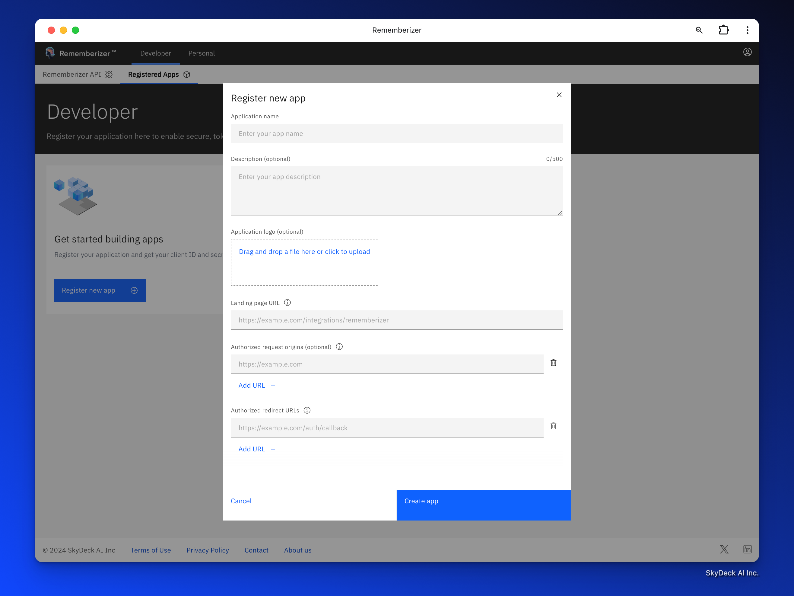 다음으로, 새 앱 등록 양식에 앱 세부 정보를 입력하라는 요청을 받게 됩니다.