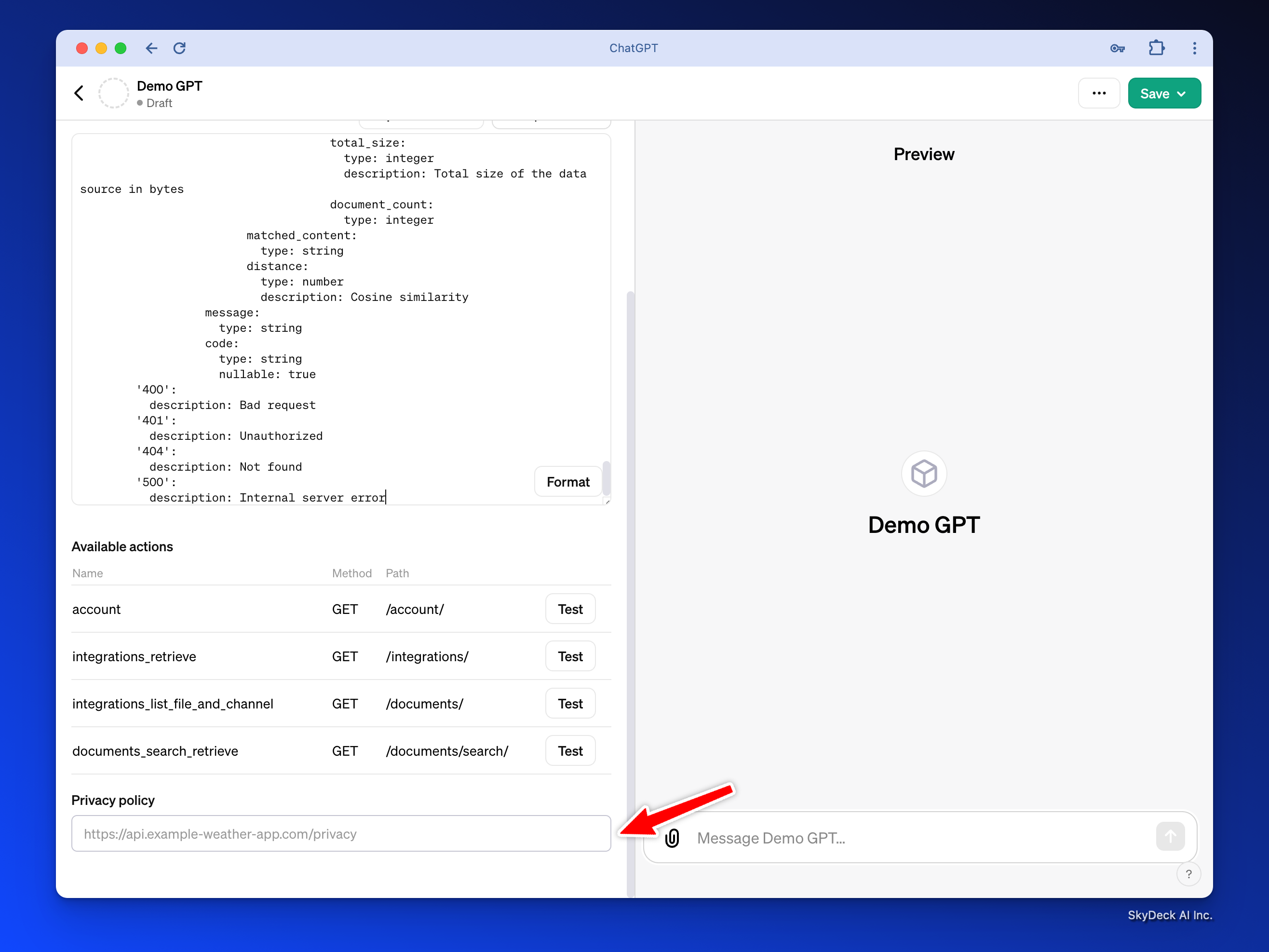 최근에 생성한 Demo GPT 앱을 엽니다.