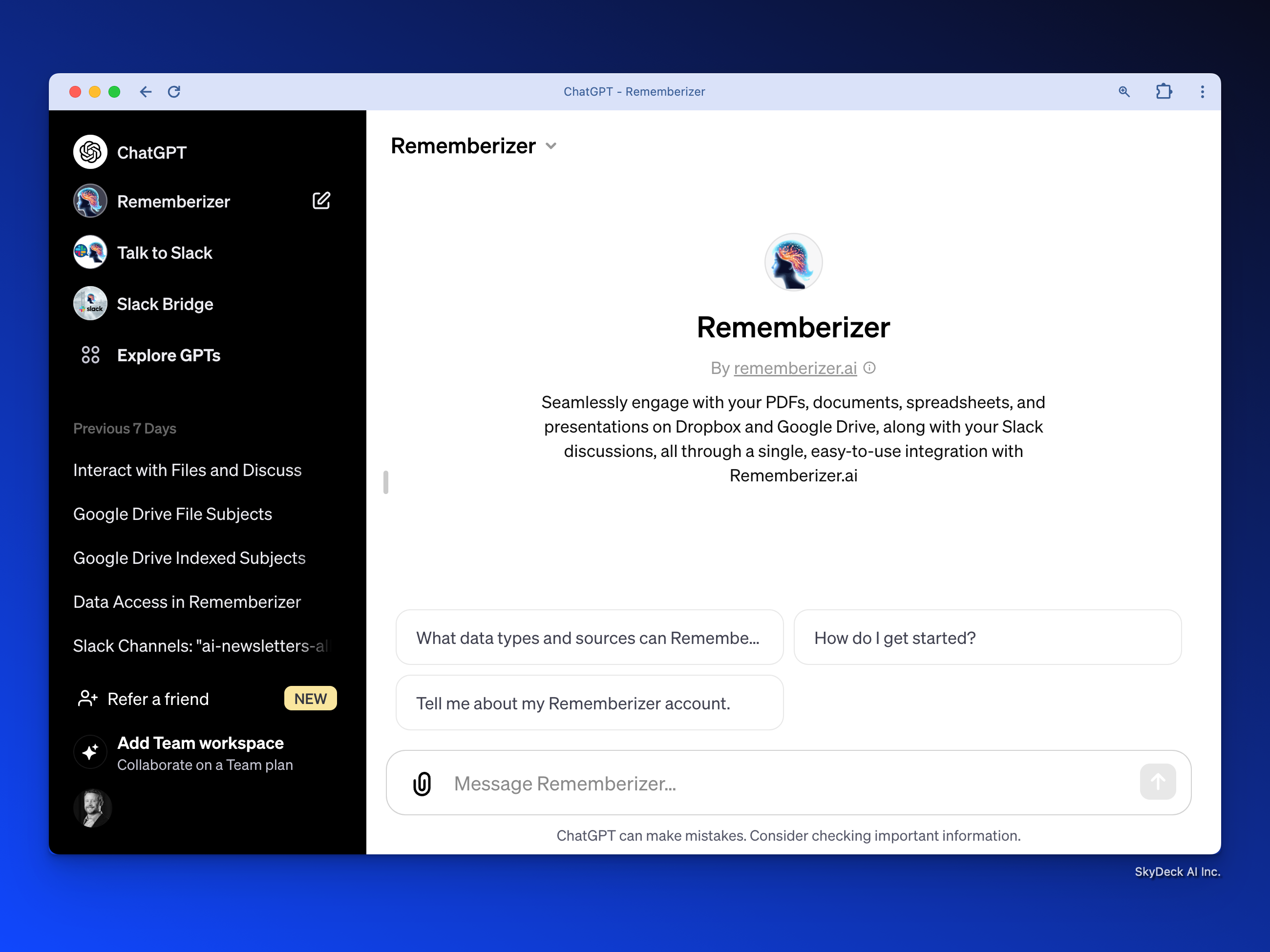 우리의 Open AI 맞춤형 GPT, 'Rememberizer'로 시작하세요.