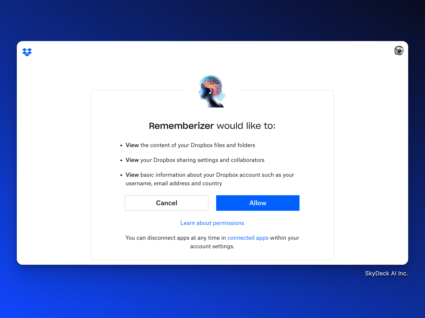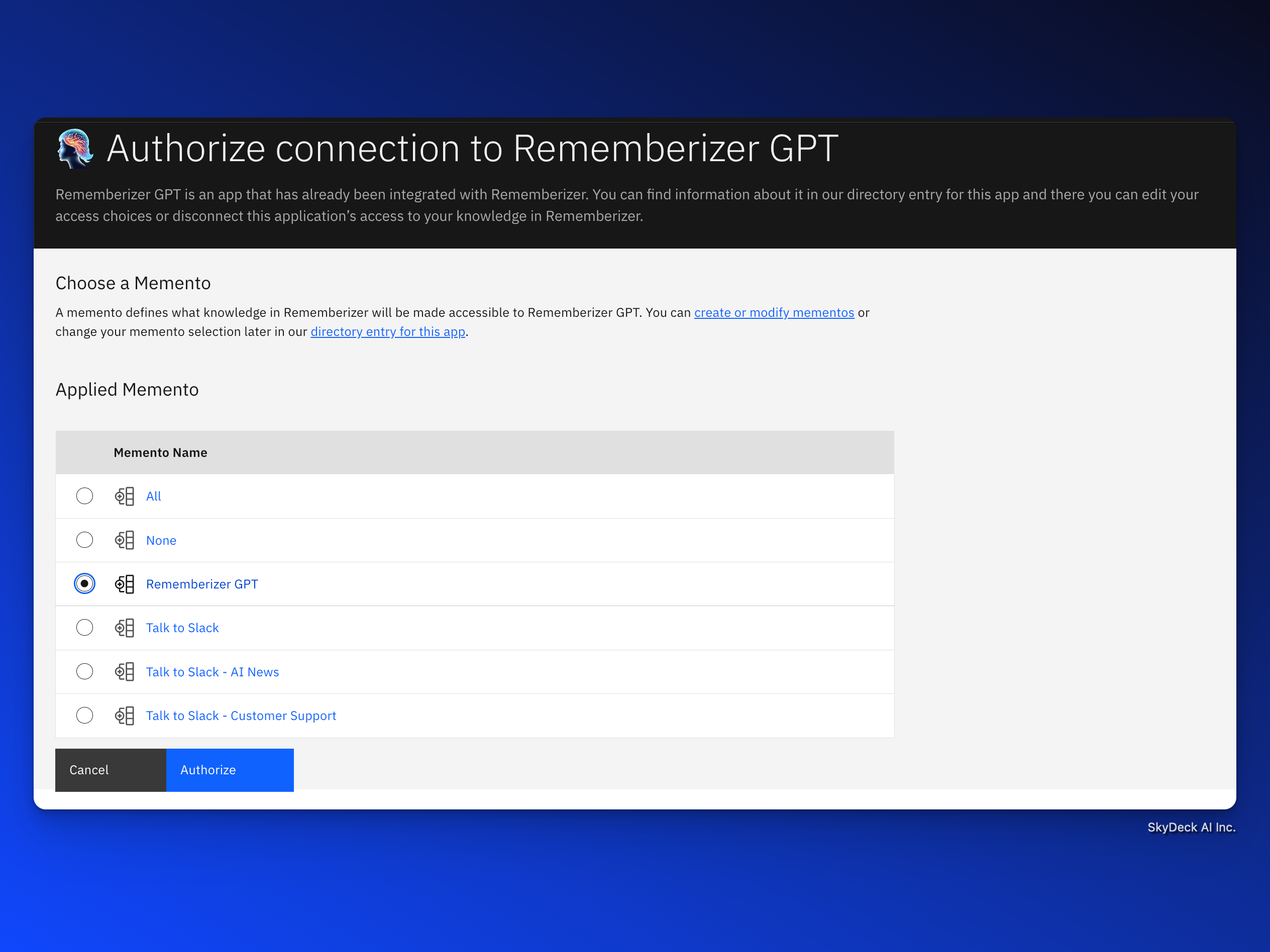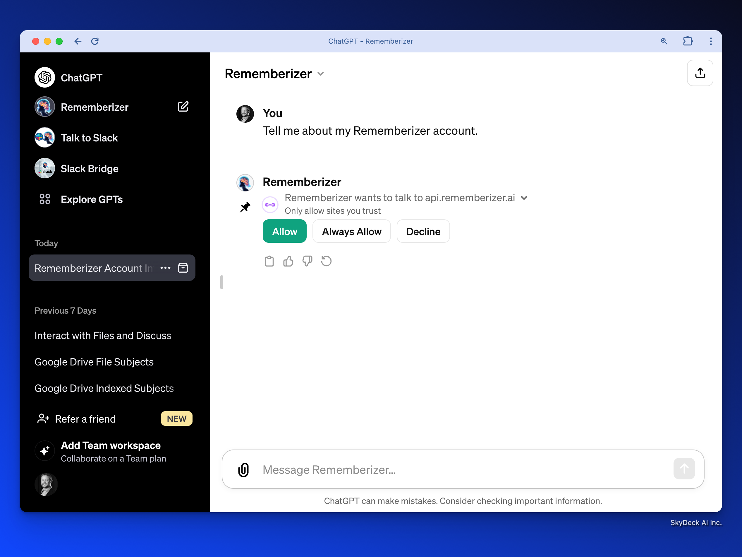 3. Rememberizer GPT에 대한 연결을 승인하십시오.