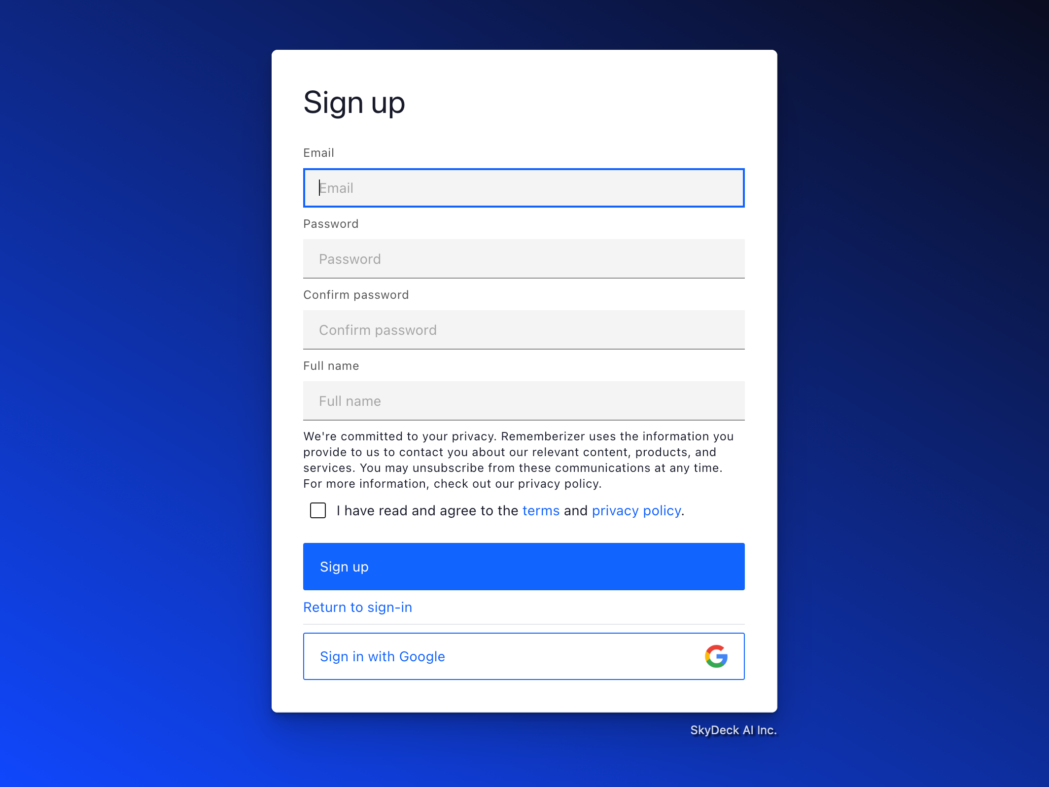 가입이 성공적으로 완료되면, Rememberizer.ai 웹 앱으로 이동하게 됩니다.
